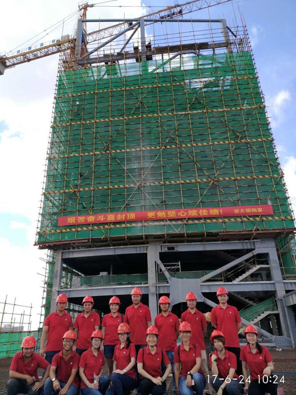 2017年624日,由我司承接的集設計、制造與安裝于一體的紅城湖商業(yè)廣場(chǎng)項目主結構順利封頂。