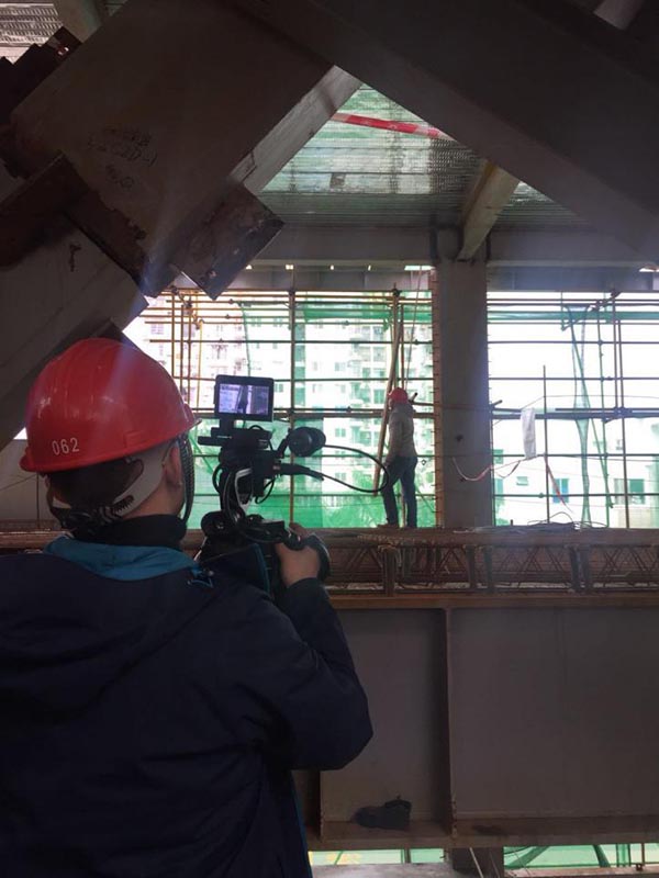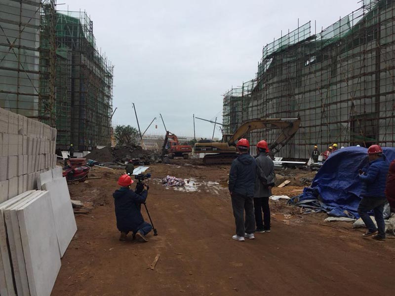 (電視臺在工地進(jìn)行拍攝)