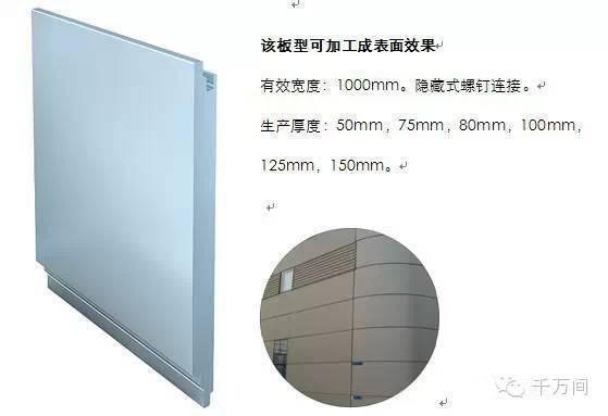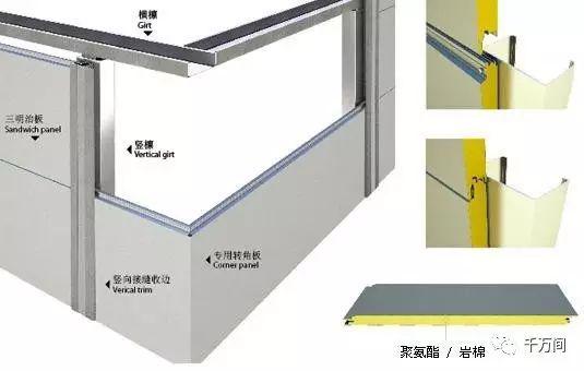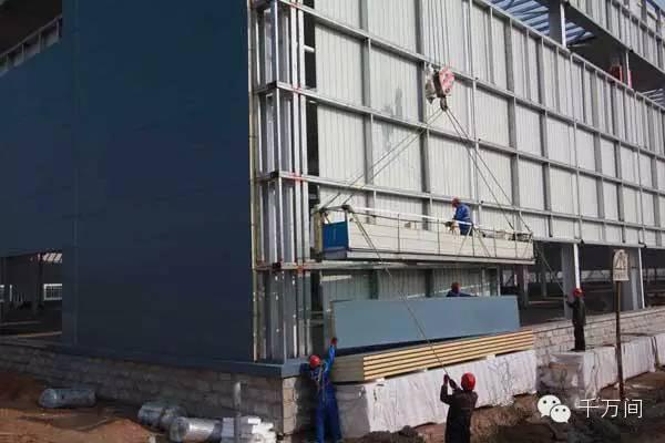 金屬夾芯板以安裝方便快速、隔熱保溫、防火、環(huán)保、美觀(guān)大方、單位重量輕,廣泛應用于工廠(chǎng)、倉庫、辦公樓等工程,板材由內外鋼板及芯材組成,外鋼板一般采用0.6厚,表面涂層一般為PVDF或PE,內鋼板一般采用0.4或0.5厚鋼板,涂層采用PE,外鋼板表面形式一般分為三種:純平,小波紋及浮雕等6種效果(最好采用純平及小波紋,很多業(yè)主都喜歡用純平板);芯材一般采用巖棉、玻璃絲棉或者聚氨酯材料,經(jīng)過(guò)機械復合而成。