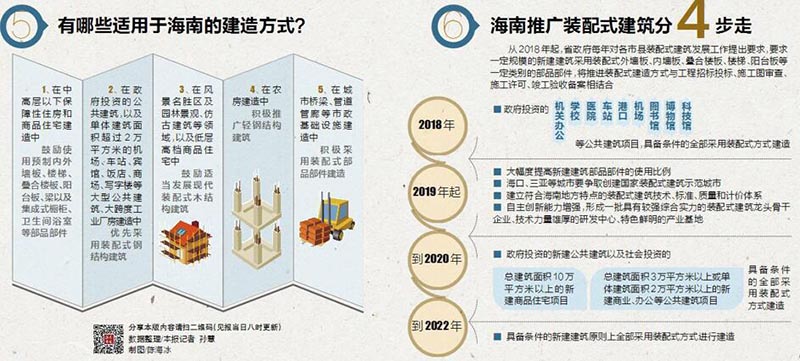 裝配式建筑是目前我國正在大力推廣應用的綠色環(huán)保建筑形式,目前在海南正處于推廣起步階段。省政府近日印發(fā)《關(guān)于大力發(fā)展裝配式建筑的實(shí)施意見(jiàn)》,要求深入貫徹省第七次黨代會(huì )精神,在全省大力發(fā)展裝配式建筑,通過(guò)建造方式的變革,促進(jìn)建筑業(yè)轉型升級。實(shí)施意見(jiàn)確定了海南省裝配式建筑發(fā)展目標,并鼓勵各市縣政府根據本市縣情況制定發(fā)展目標。