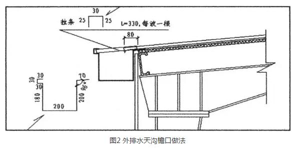 北方少雨地區且工程對檐口要求不高的情況,建議采用自由落水檐口。其防漏性好,造價(jià)較低,在工程得到廣泛應用。