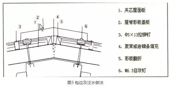包邊及泛水不僅勾勒出建筑的線(xiàn)條,影響建筑的美觀(guān)程度,同時(shí)在結構上把建筑聯(lián)結成一個(gè)整體,防風(fēng)、防雨,使建筑更堅固耐用。具體見(jiàn)圖3所示。