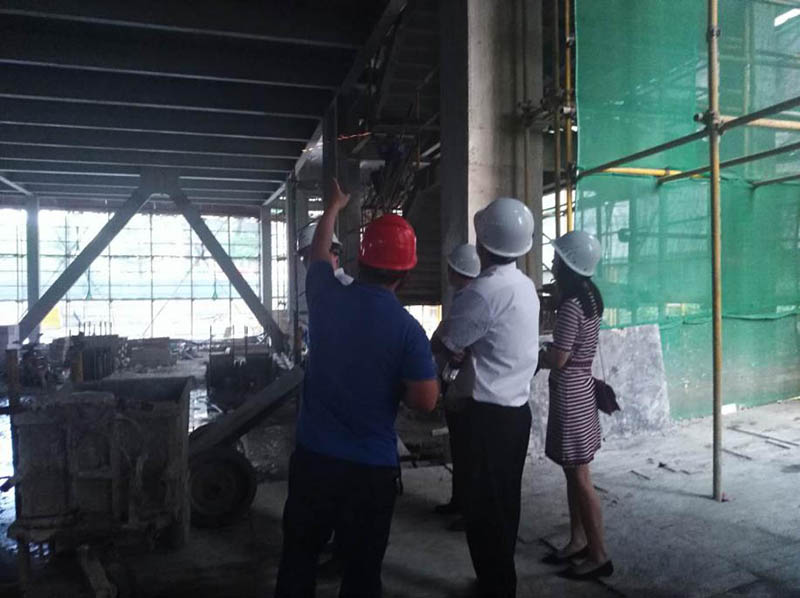 首先帶領(lǐng)考察團一行到27層考察了鋼結構的連接安裝,并了解防腐防火材料及樓承板的安裝和澆筑,隨后來(lái)到25層參觀(guān)了砌體結構及樣板間等。