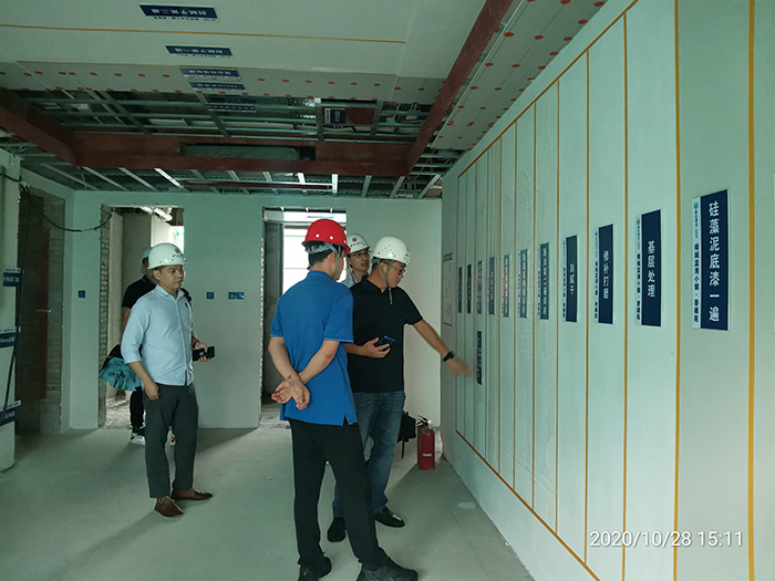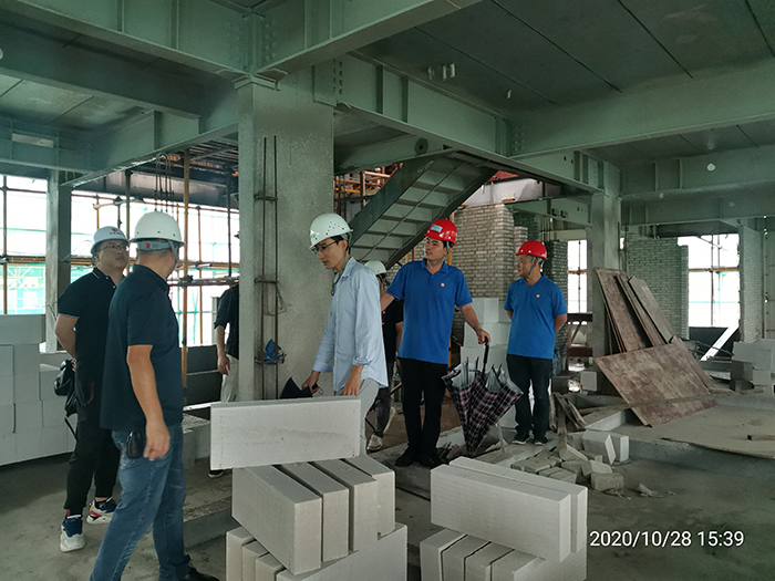 隨后,考察團考察了陵水綠城香樟苑、紫荊苑項目施工現場(chǎng)?疾靾F主要關(guān)注到:鋼柱防火涂料施工與土建磚墻連接、外墻防水施工節點(diǎn)、鋼梁吊頂和不吊頂封堵施工做法、外墻防水、室內分戶(hù)墻和隔墻用材料等施工細節,及隱式框架開(kāi)間大、中間沒(méi)有剪力墻,后期易改造的明顯優(yōu)勢。