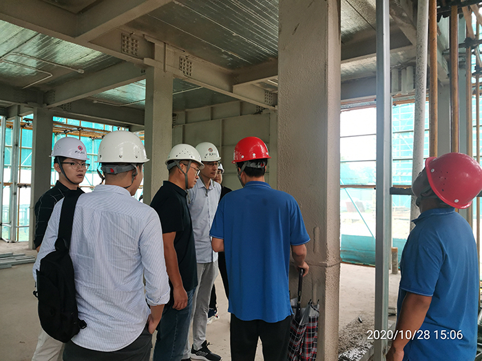 在萬(wàn)寧臻園項目,考察團考察了現場(chǎng)的施工情況,彭經(jīng)理為考察團詳細講解了我司的專(zhuān)利技術(shù)——隱式鋼框架支撐結構體系,并觀(guān)看了陵水綠城香樟苑項目的施工視頻,雙方就鋼結構隱式框架體系如何更好的實(shí)現裝配率的各種方案進(jìn)行了深入交流?疾旖M著(zhù)重關(guān)注成本、裝配率、工期、鋼結構和其他材料界面的處理工藝。