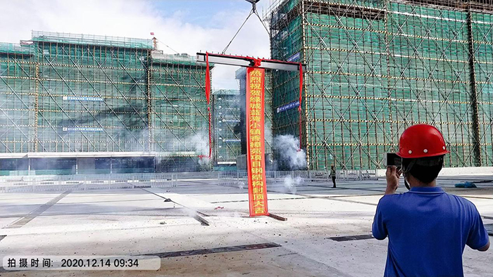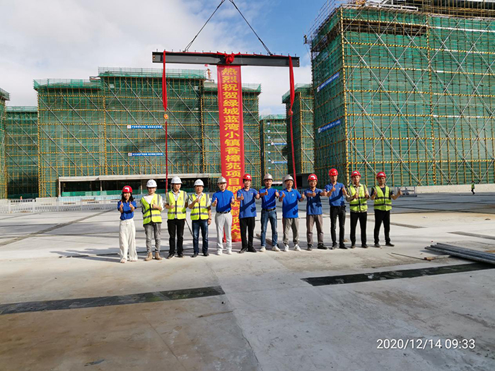 2020年12月14日上午09:30分,由浙大鋼構承建的綠城陵水香樟苑鋼結構裝配式住宅項目施工現場(chǎng)封頂儀式隆重舉行。業(yè)主方申總、沈工、吉工,監理袁總等共同出席。