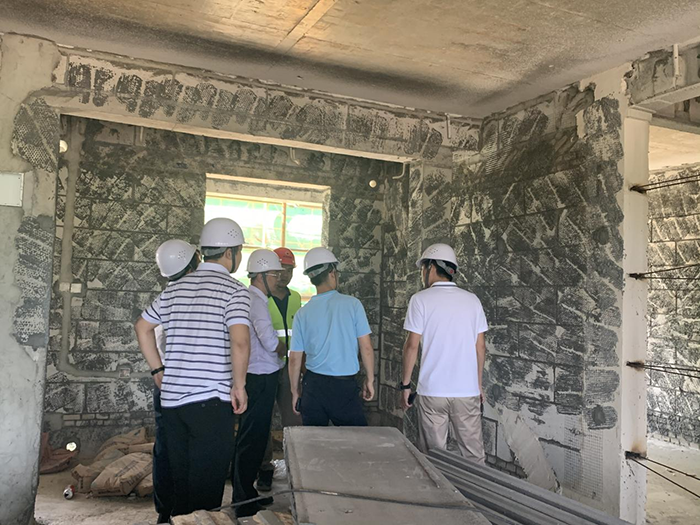 考察團詳細了解了香樟苑項目施工過(guò)程中的工序、工期及技術(shù)條件并參觀(guān)了香樟苑項目施工現場(chǎng),我司項目經(jīng)理對項目信息、鋼結構與圍護墻體、砌體、裝修等節點(diǎn)處理問(wèn)題進(jìn)行講解。在樣板間,李秘書(shū)長(cháng)對綠城施工質(zhì)量的控制表示認可,對于鋼結構與墻體節點(diǎn)的處理方式給與好評,對于鋼結構與條板墻之間的開(kāi)裂隱患比較關(guān)注,我司項目經(jīng)理及張衛東總對此問(wèn)題的處理方法進(jìn)行了詳細講解。