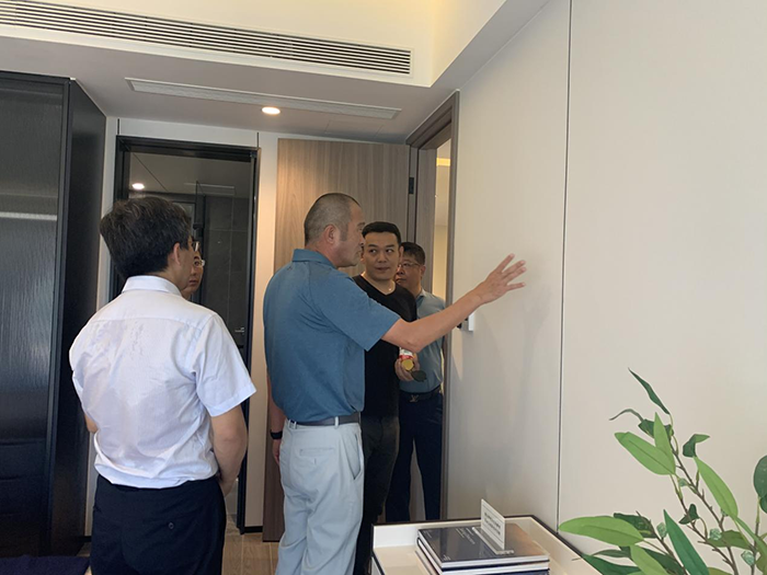 隨后,考察團蒞臨藍灣小鎮中心樣板樓。該樓棟主體鋼結構由我司施工,目前已經(jīng)完成了精裝修并對外展示。綠城高地公司徐總詳細介紹了應用在該樣板樓的裝配式墻板、裝配式樓板、整體衛浴等目前國內領(lǐng)先的裝配式綠色環(huán)保材料,并實(shí)地體驗應用效果。徐總表示,小鎮中心組團樣板樓應用了裝配式鋼結構、裝配式墻體結構、裝配式整體衛浴等一系列裝配式部品部件,是裝配式主體結構、二次結構以及裝配式內裝的完美結合。能夠從根本上解決墻板開(kāi)裂及滲漏水等問(wèn)題,同時(shí)也徹底解決了傳統內裝的質(zhì)量通病,大大提高了裝配率及施工速度,一定是未來(lái)裝配式建筑的發(fā)展趨勢。