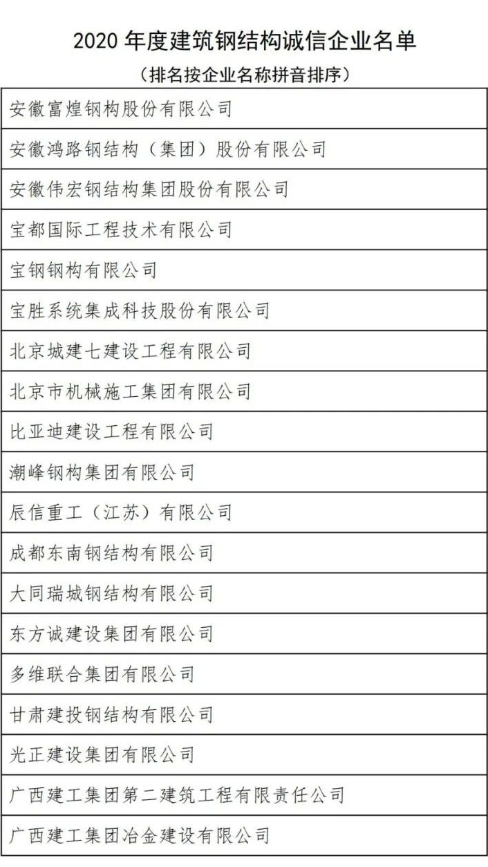 【表彰公告】關(guān)于2020年度建筑鋼結構行業(yè)誠信企業(yè)的通報