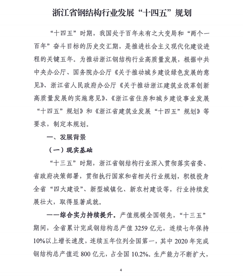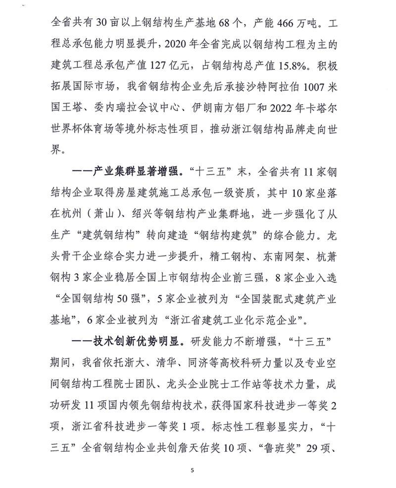 關(guān)于印發(fā)《浙江省鋼結構行業(yè)發(fā)展“十四五”規劃》的通知