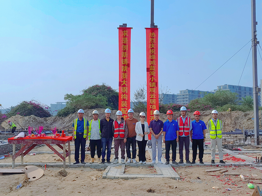 2023年2月25日上午10點(diǎn)08分,在甲方、監理等領(lǐng)導的共同見(jiàn)證下,由浙大鋼構承建的海南綠城藍灣小鎮繼2019年開(kāi)工的香樟苑項目以來(lái),第六個(gè)鋼結構裝配式高端住宅項目——觀(guān)云居鋼結構工程項目首根鋼柱吊裝順利完成,開(kāi)工儀式圓滿(mǎn)舉行,項目宣告正式進(jìn)入鋼結構主體施工階段。
