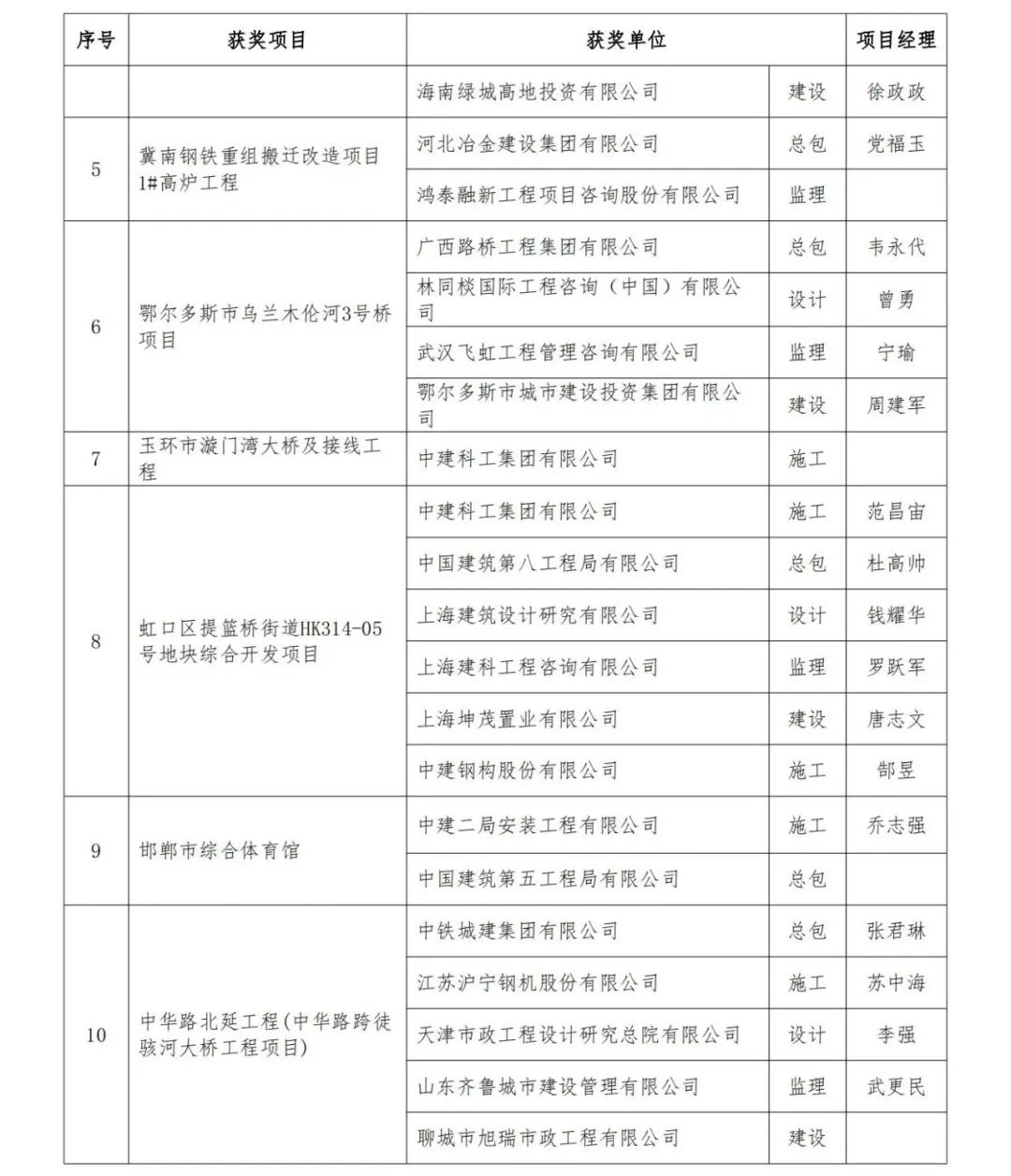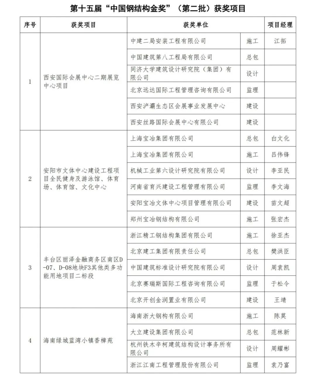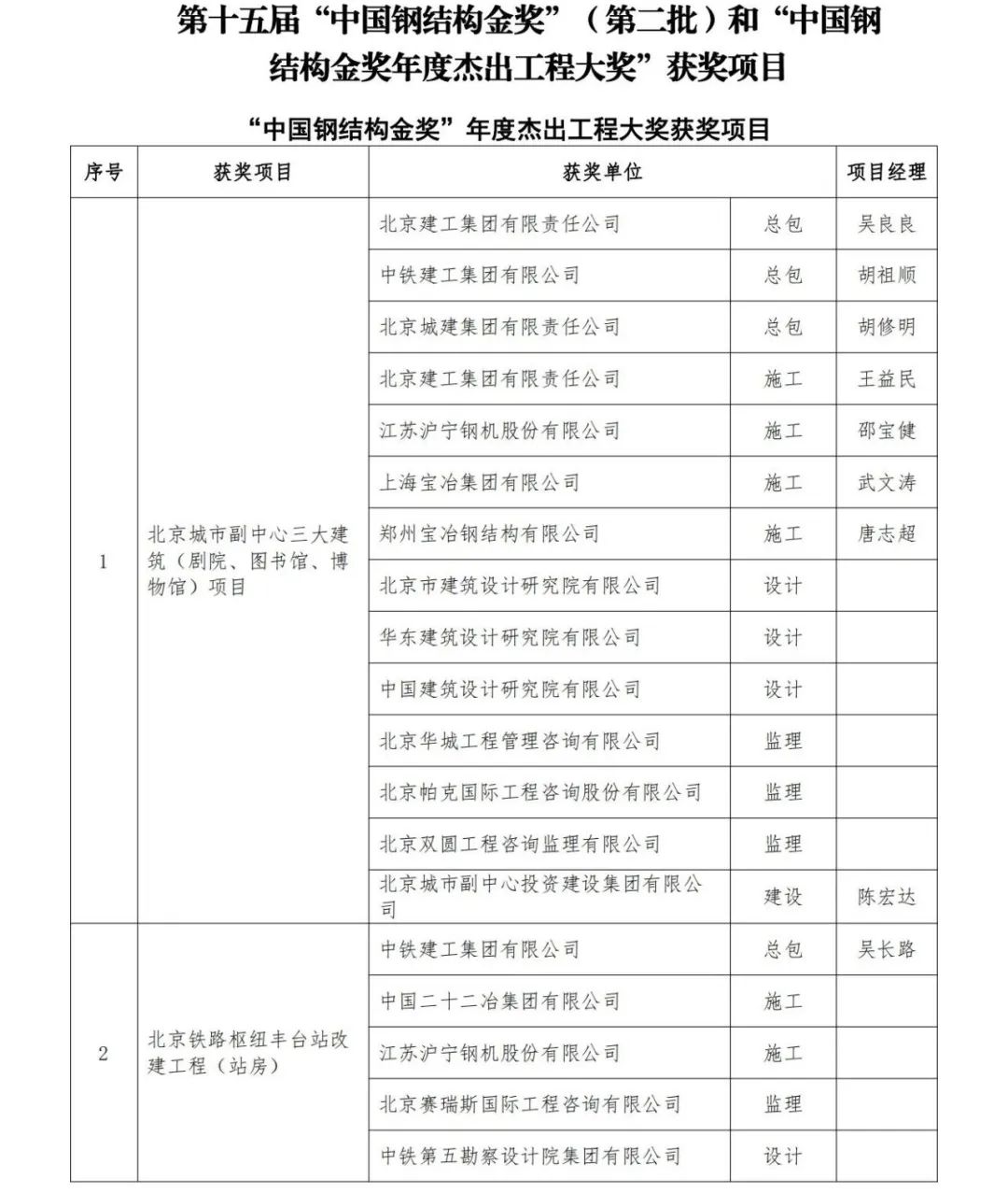 【獲獎公告】關(guān)于公布第十五屆“中國鋼結構金獎”(第二批)和“中國鋼結構金獎年度杰出工程大獎”獲獎項目的通知