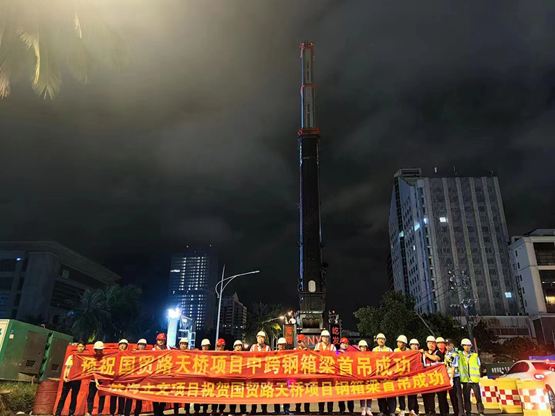 2023年6月20日23:00,在業(yè)主、總包、監理、設計等單位領(lǐng)導的共同見(jiàn)證下,由浙大鋼構承建的?趪Q路天橋項目首根鋼箱梁吊裝順利完成。