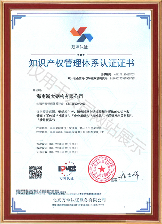 知識產(chǎn)權管理體系認證證書(shū)